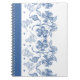 Un cuaderno de bonito, un sofisticado cuaderno de espiral o un diario con un patrón de borde floral en azul índigo sobre un fondo blanco que puede cambiar si lo desea. Parte de la colección "Índigo" de Posh y Painterly.