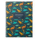 Creado especialmente para niños amantes de los dinosaurios, este diseño colorido presenta ilustraciones de dinosaurios naranja, amarillo y verde menta sobre un fondo azul marino. Personaliza este cuaderno temático de dinosaurios con tu nombre o texto personalizado en letras blancas.
