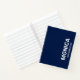 Crea tu propio bloc de notas en blanco regido por la universidad para promocionar tu sitio web o blog. Puede personalizar el texto en negrita de estilo de todos los mayúsculas... o probar un estilo de tipo de letra de script de caligrafía diferente. Cambiar el color de fondo de la medianoche o azul marino.