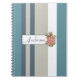 Cuaderno Azul Verde azulado moderno y floral a rayas de Tan