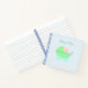 Este diseño azul, blanco y verde tiene un bebé lindo en un buggy en un cheque de gingham azul y blanco. La parte posterior es un punto de polka azul sobre blanco. Puede personalizar el título con su propio mensaje.