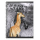 Una jirafa de bebé muy linda y colorida en una fotografía en blanco y negro.