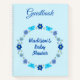 Este increíble cuaderno de espiral de Baby Shower Guestbook cuenta con una imagen de arte digital de un grupo de flores y mariposas, cada una con un tono de azul para representar a un bebé. Las flores incluyen Dahlias, lirios de agua, no me olviden ni crisantemos. Las flores y las mariposas están dispuestas en círculo y hay un texto personalizado en el círculo para que puedas personalizarlo como quieras, haciendo este diseño perfecto para revelar el género del bebé, para una ducha bebé o para celebrar a un bebé recién nacido.