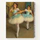 Bailarinas esperando su momento para actuar en una amplia y hermosa sala adornada con madera tallada y dorada. Con estas niñas vestidas con románticos tutús azul turquesa y blanco con un toque de amarillo, este cuaderno encantará a todos los amantes del ballet y de la danza.
