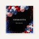 Un fondo negro de moda. Decorada con globos de colores patrióticos en azul y blanco rojo. Personalice y agregue un nombre y un título. Texto blanco.