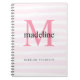 Cuaderno Bandas rosadas modernas Monograma Nombre inicial