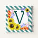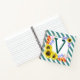 Un cuaderno monograma lindo con girasoles y rayas verde azuladas diagonales.