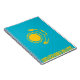 La bandera de Kazajistán es un campo azul con en el centro un sol y un águila y en un modelo ornamental nacional. Los colores usados en la bandera son azul, amarillo. La proporción de la bandera de Kazajistán es 1: 2. La bandera de Kazajistán fue adoptada en 1992. El primer uso del diseño actual de la bandera estaba en 1992. El cambio pasado al diseño de la bandera de Kazajistán de la corriente estaba en 1992.