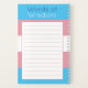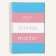 Este diseño presenta los colores de la bandera de orgullo trans, blanco, azul y rosa. En el frente está el lema 'nuestras historias importan'. En la parte de atrás hay una sección Palabras de Sabiduría para que escribas notas mientras lees. Puede personalizar de todos los elementos de este diseño en Zazzle, desde texto hasta colores. ⭐ Creado por Jessica Amber. ⭐ Para más papelería de orgullo, visita mi tienda zazzle.com/jessicaamberartist ⭐ Para pedidos de personalizado, envíame un mensaje a Zazzle