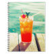 Foto artística temática de verano de un cóctel de atardecer naranja contra un fondo de piscina. Imagen de fiesta con temática retro. Cócteles de época con un toque elegante.