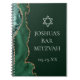 Moda verde oscuro y agate dorado decoran el lado de esta moderna libreta personalizado Bar Mitzvah. El nombre de su hijo está escrito en un hermoso guión formal bajo la Estrella de David. Perfecto para una familia judía que celebra que su hijo sea llamado a la Torá.