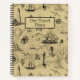 Este diseño marinero consiste en elementos náuticos vintage como barcos, faros, anclas, gaviotas, conchas marinas y timones de barco. La imagen de fondo está tomada de un mapa antiguo. Personaliza este cuaderno con tu propio nombre o título. Perfecto para el hogar, la oficina y la escuela.