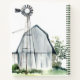 Watercolor Barn I de Jennifer Paxton Parker. Granero de color gris-blanco con vegetación y un pequeño molino de viento.