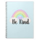 Este diario/cuaderno tiene un fondo azul cielo con un arcoiris pastel de color agua y dice "Be Kind". Coordina con nuestra colección de arcoiris.
