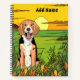 Perro Beagle en campos y flores. Trabajando, pastoreando, cazando perros de granja. Añadir esta imagen a otros productos. Cambiar el nombre de su perro, nombre de la persona o nombre de la granja. Elija el tipo de letra, color, tamaño o sin texto.
