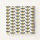 Este diseño de bloc de notas presenta una abeja ornamentada en la parte delantera con el "tipo" de trabajo escrito a continuación en un tipo de letra de guión. El diseño de las abejas es negro y amarillo sobre un fondo blanco brillante. La parte posterior del bloc de notas tiene un diseño de abejas extensible.