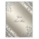 Libreta de boda y eventos elegante beige cremoso con acentos plateados. Esta bonita libreta beige crema marfil funciona bien para un libro de invitados de boda, planificador de boda, libro de invitados de fiesta de aniversario, libreta de planificación de fiestas, libreta corporativa y cualquier otra ocasión especial o evento. Puede personalizar fácilmente la portada con su texto simplemente eligiendo el botón naranja "¡Personalízalo!" para comenzar a agregar los detalles de su evento, estilo de fuente, tamaño y color de fuente, y texto. Tenga en cuenta que todos los diseños de libretas, tarjetas y invitaciones que encontrará en Zazzle son gráficos impresos sin joyas, lazos, partes o piezas elevadas, grabadas o agregadas reales.