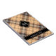 El diseño es de tonos beige y marrón. Patrón sin foco. texto personalizado y monograma.