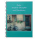 La imagen frente a un cuaderno es una escena típica europea: bicicleta estacionada frente a un edificio antiguo con postigos y cajas de flores. Encima de la imagen está el "título" : "Notas, pensamientos aleatorios y citas" (personalizable)