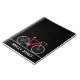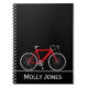 Bicicleta roja sobre fondo negro con un nombre personalizado. El nombre se puede editar o eliminar. Se puede cambiar el color de fondo.