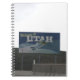 Un cuaderno con una foto del cartel de Bienvenida a Utah.