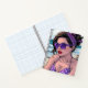 Un lindo libro de historietas personalizado ilustracion de una mujer en la playa con gafas de sol moradas, bandana y bikini.
