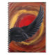 Cuaderno de Black Bird Raven. Black Raven Journal. El tótem animal de muchos. Ala de cuervo negro contra el fondo rojo y amarillo vibrante. Reorganice gráficos, juegue con colores, para que encaje con su decoración. Gran imagen de un pájaro para los que aman los cuervos, cuervos y aves negras.