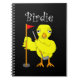 Birdie en texto rizado con una chica amarilla sosteniendo un club de golf y la bandera en un hoyo de golf es un diseño de regalo divertido para los golfistas.