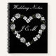 Keep all your wedding planning thoughts and inspirations in one place with this chic and modern notebook. The cover features a beautiful white floral heart with custom "J & M" initials on a sleek black background, matching your guest book and invitations.