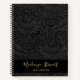 Elegant vintage black floral botanical pattern sketchbook notebook with a custom name in stylish script typography and "sketchbook" in a modern san serif font.