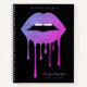 Hot Pink and Purple Dripping Glitter Lips Makeup Appointment Notebook with fashion faux rainbow purple and hot pink glitter drips on a chic black background with your custom details and name. Designed by Cedar and String. Perfect for your luxury aesthetic and chic lifestyle. If you need assistance or matching items, please contact us at cedarandstring@gmail.com
