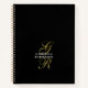 Elegant refined premium look chic spiral notebook, personalizable customizable with monogram, initial letters and name. Classy timeless black background, elegant gold calligraphy script handwritten initial letters, and stylish white typography for the name. Beautiful, neutral monochromatic, minimalist minimal simple and useful gift for her, under 25 dollars the soft cover version. For personal use or as a professional business stationery, at home office or at your workplace bureau. Suitable as a birthday, Mother’s Day, Christmas, graduation, even retirement present. Or for your company employees for example, each one notebook easily customized.