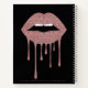 Rose Gold Dripping Glitter Lips Makeup Appointment Notebook with fashion faux blush pink/rose gold glitter drips on a chic black background with your custom details and name. Designed by Cedar and String. Perfect for your luxury aesthetic and chic lifestyle. If you need assistance or matching items, please contact us at cedarandstring@gmail.com