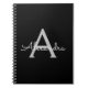 Cuaderno Black Silver Modern Script Girly Monograma Nombre