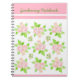 Un bloc de notas en bonito para su personalizar, útil como un cuaderno de jardinería o un diario, con un patrón de rosas rosadas, desde un diseño de acuarela de Judy Adamson.