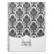 Cuaderno Blanco y negro moderno del damasco personalizado