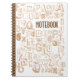 Alphabet Notebook (Brown) es un diario único en color marrón y blanco, que cuenta con varios garabatos de las 26 letras del alfabeto en diferentes tipos de letra, todo con un fondo blanco. También está disponible en otras opciones de color. © Morning 6