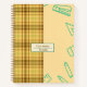 Portátil de espiral de yeso amarillo y marrón. Funda tartán sin costura. Haga clic en el botón personalizar para agregar el texto. La imagen se puede girar o cambiar de tamaño.