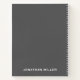 Este cuaderno está diseñado teniendo en cuenta a las personas zurdas, presentando la espiral de la derecha para facilitar su uso. La cubierta gris se personaliza con el nombre de una tipografía blanca clásica de bloques en la parte inferior, añadiendo un toque de sofisticación a la toma de notas diaria.