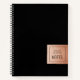 Cuaderno personalizado minimalista y masculino clásico de cobre y negro con un pequeño nombre de tipo de letra de aspecto profesional y fecha desenfocada en la cubierta de la fuente.