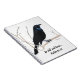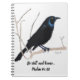 Este es un cuaderno de espiral con una imagen de un pájaro negro dibujado en lápiz de color e incluye un verso inspirador.