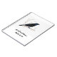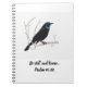 Este es un cuaderno de espiral con una imagen de un pájaro negro dibujado en lápiz de color e incluye un verso inspirador.