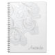 ¡Un nuevo e impresionante producto de Zazzle! Este cuaderno haría un gran diario, diario o un millón de usos más. Super regalo para muchas ocasiones. El diseño tiene un aspecto esquemático, con un patrón floreciente de remolque gris y blanco que se sitúa sobre un tenue fondo de puntos polka. El diseño principal tiene un efecto de sombra para destacar fuera de la página. Espacio para personalizarlo con tu nombre en la esquina inferior derecha.