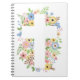 Cuaderno Bloc de notas de espiral blanca de cruz floral