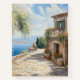 Este paisaje de campo mediterráneo soñado le sumerge al instante en un tranquilo camino de adoquines con vistas al mar brillante. Con encantadoras casitas de campo de piedra adornadas con flores vibrantes y terrazas soleadas, captura perfectamente la atmósfera relajada y atemporal de los pueblos costeros. Los suaves tonos tierra se mezclan con el cielo azul y las aguas serenas, creando un diseño tranquilo y alegre, lleno de calidez y belleza rústica. ¡Un trozo de paraíso mediterráneo!