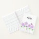 Un cuaderno con flores de lila y nombre. Personalizar el bloc de notas con su nombre o texto especial, color de fondo, entre otras opciones.