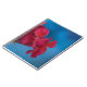 Geranio rojo en un fondo azul. La cubierta brillante te levantará el ánimo y te pondrá en un ambiente de estudio o trabajo.