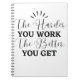 Un cuaderno de espiral motivacional con la cita "Cuanto más difícil trabajes, mejor obtienes", perfecto para la inspiración y la toma de notas a diario.
