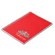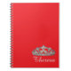 El bloc de notas se muestra en rojo con una huella de la corona real y un nombre personalizado. Personalizar este artículo o compra tal cual.