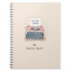 Cuta y giratoria acuarela ilustrada libro de notas/ diario de máquina de escribir retro. Personalizar con su NOMBRE usando los cuadros "Editar esta plantilla de diseño" en el lado derecho del elemento, o haga clic en el botón azul "Personalizar" para cambiar los tipos de letra y los colores del texto.